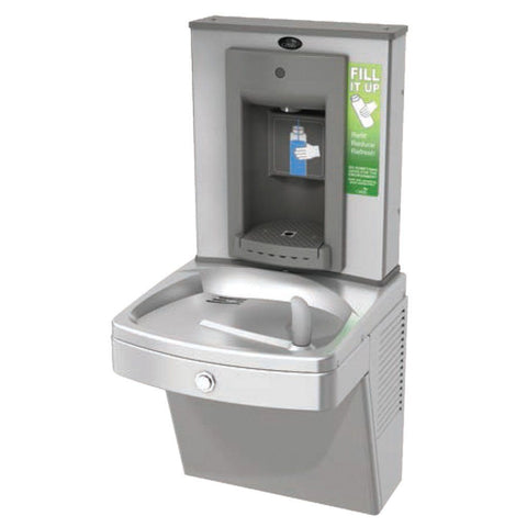 This Wall Mounted Vandal Resistant Water Cooler by Elkay is ideal for schools and other heavy use installations. The Elkay VRC8S water cooler is a vandal resistant water cooler, featuring a variety of details that make this unit able to withstand harsh environments. This unit is built to last and resist stains and corrosion. One of the greatest features of this unit is that even when electric is interrupted, this drinking fountain will continue to provide drinking water. Rated for both indoor and outdoor use, this manual push button activated water cooler is a strong option for a large variety of locations.