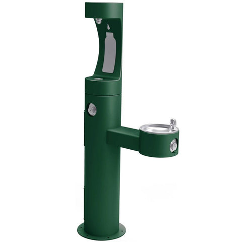 This Outdoor Endura™ Bi-Level ADA Freeze Resistant Pedestal Drinking Fountain by Halsey Taylor is ideal in most every outdoor setting. This Halsey Taylor unit has a textured powder coat finish and E-Coat immersion for year-round beauty with minimum maintenance and protection against corrosion. What sets this unit apart is its additional feature of being freeze Resistant, making it an ideal outdoor unit in areas that go below freezing in temperature. Contour formed stainless steel basin with rounded corners and edges reduces splatter, insures proper drainage and prevents standing waste water. Designed to be ADA Compliant, so the unit is easily accessible to both physically challenged and able-bodied individuals. The unit is also vandal resistant. Ideally suited for installation in public areas. This unit is also a non-refrigerated unit and requires no electrical power source.